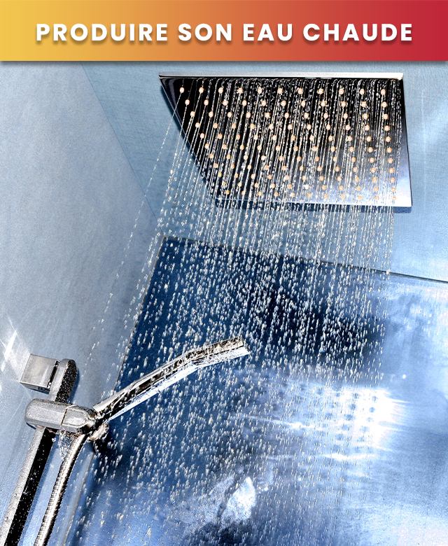 Produisez efficacement, durablement et en quantité importante votre propre eau chaude sanitaire via un système d'auto-consammation alimenté par le rayonnement solaire et permettant d'accumuler de l'eau déja préchauffée dans votre réservoire.